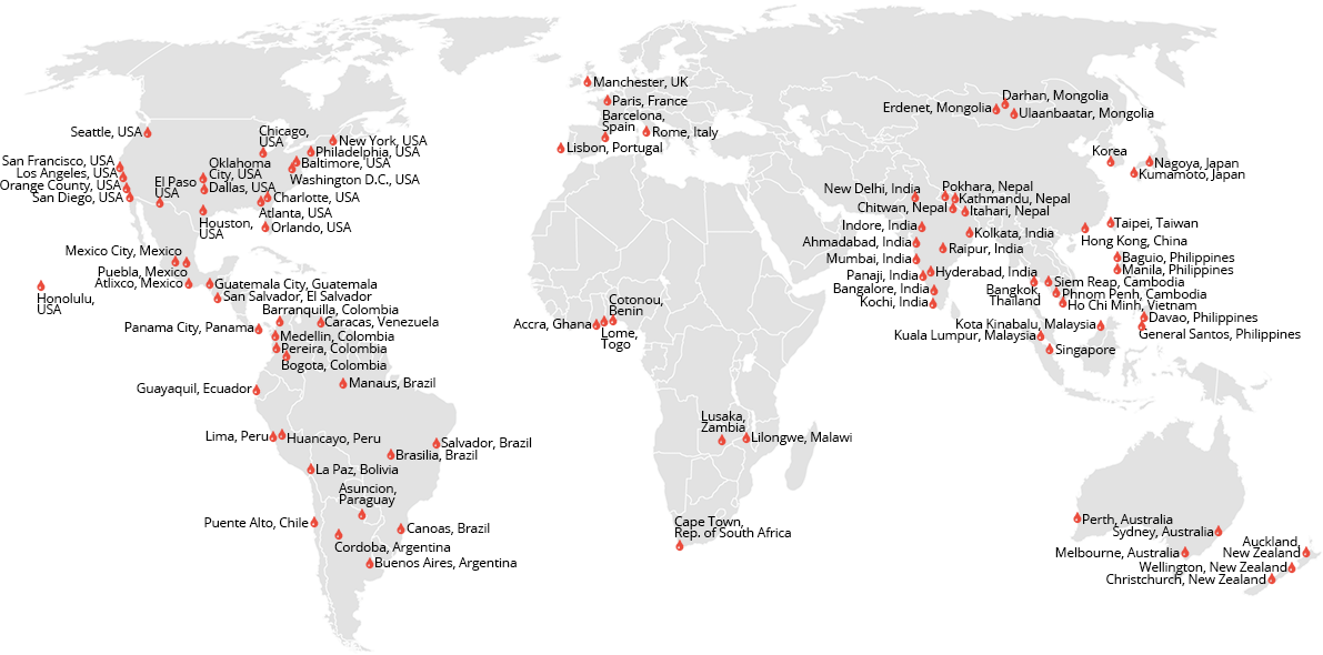 파트너십등의 내용으로 2004년 ~2018년까지 6개 대륙에서 41개국이