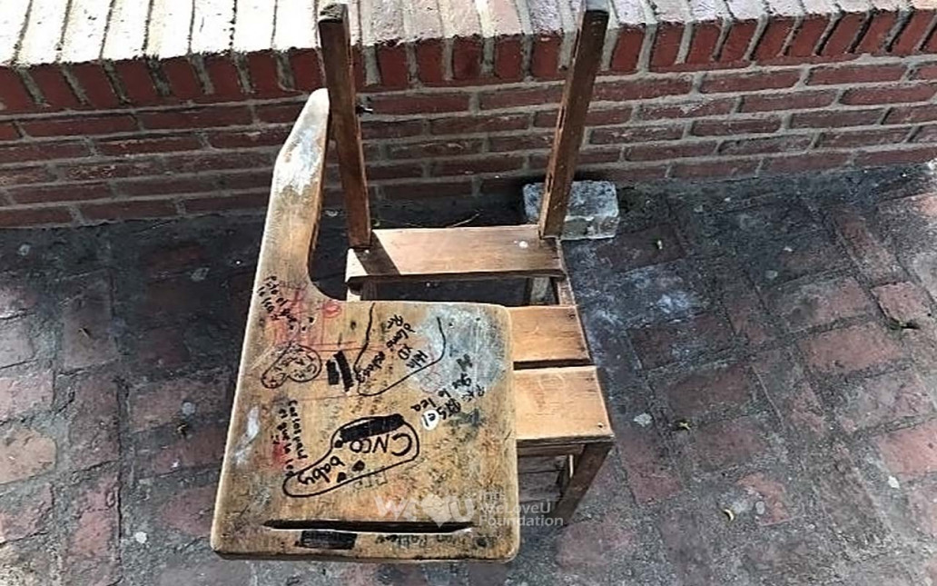 위러브유는 학교측에 책걸상 120개를 전달해서 그동안 서서 수업을 들어야 했고,
