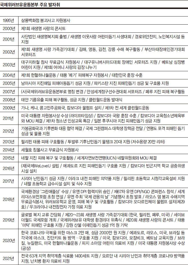 국제위러브유운동본부가 펼치는 국내외 복지활동