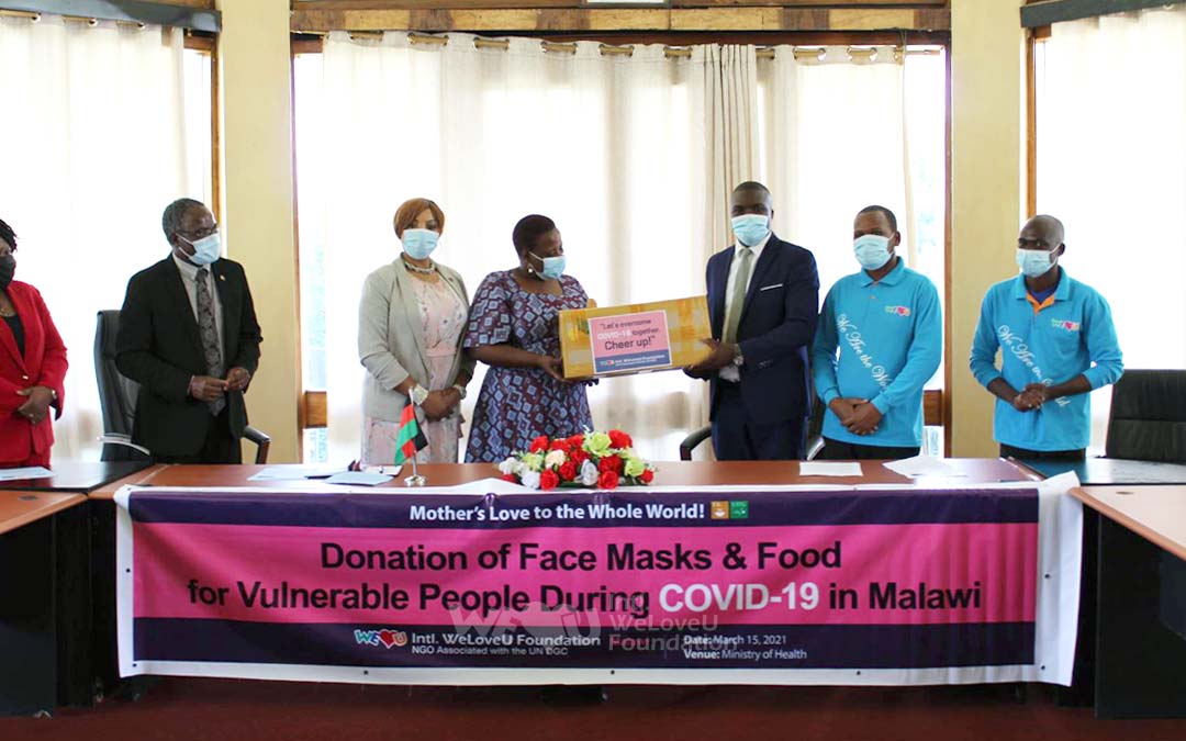 2021년 3월 15일, 말라위 릴롱궤 회원들이 말라위 보건부에 마스크 5천 장과