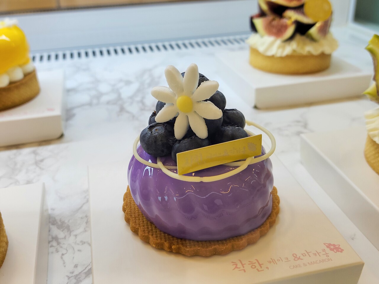 근처 카페에 들러 달달한 블루베리 무스 케이크와