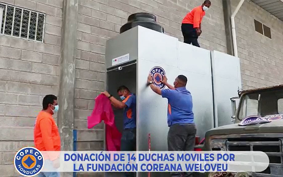 코로나19 방역을 위해 테구시갈파에 휴대용 샤워 부스 지원