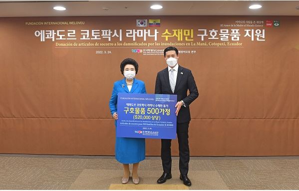 글로벌 복지단체인 국제위러브유가 기록적 폭우로 수해를 입은 에콰도르 긴급구호에 나섰다.위러브유는 24일 분당 수내동 홀리프린스에서 장길자 회장과 이사진, 아드리안 카오 주한 에콰도르