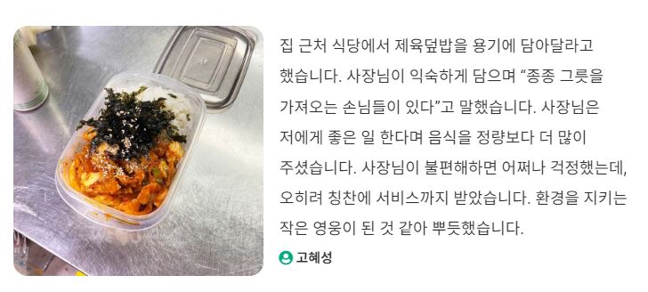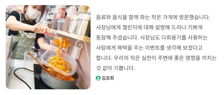 일회용품이나 플라스틱 포장 대신 다회용기를 사용해 탄소를