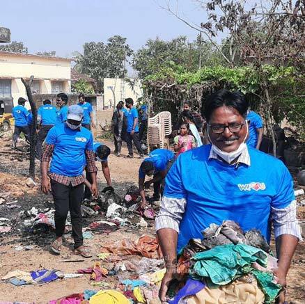 부지런히 집 짓기에 나섰습니다.- 화재가 난 집 주변을 정리하고