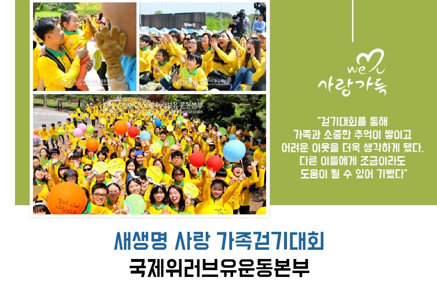 국제위러브유에서 진행되어 온 '새생명 사랑 가족걷기대회'도 한동안